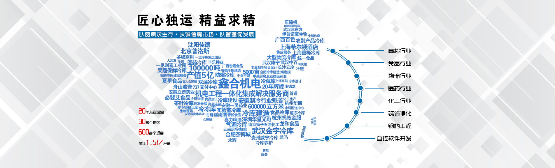 安徽鑫合機電設備有限公司于2002年組建運營,專業(yè)從事冷凍、冷藏庫、中央空調、醫(yī)藥凈化工程的規(guī)劃設計、施工承建、售后服務為一體的綜合性工程公司,與100多家實力雄厚的大中型企業(yè)建立長期產略合作關系,其中有多家世界500強和上市企業(yè)。公司作為中國倉儲與配送協會會員單位、安徽省制冷學會理事單位、上海楊浦區(qū)制冷協會工程總承包負責單位,引領于行業(yè)前沿。我們將銘記給予我們大力支持的各界新老朋友及合作伙伴,我們將會保持“互惠互利、共同發(fā)展”的原則與您共創(chuàng)雙嬴的合作關系。